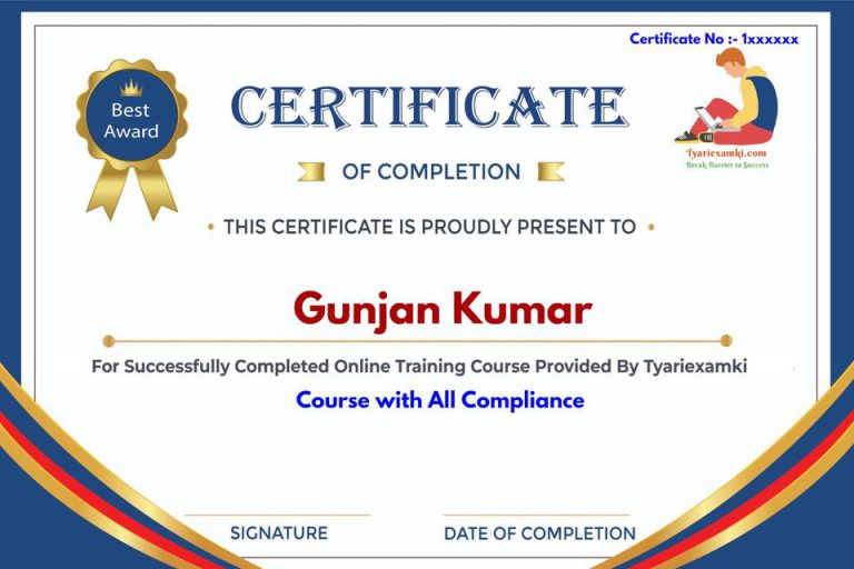 This certificate validates the successful completion of the online training Course by Tyariexamki. It represents dedication, knowledge, and expertise in ROC Incorporation and Compliance Filing.